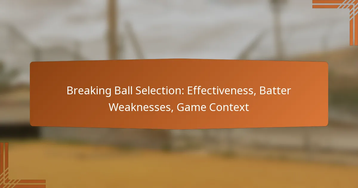 Breaking balls are crucial pitches that exhibit significant lateral or vertical movement, making them challenging for batters to connect with. By disrupting a batter’s timing and targeting specific weaknesses, pitchers can enhance their effectiveness through strategic selection of pitches like curveballs and sliders, tailored to the batter’s tendencies and the game’s context.